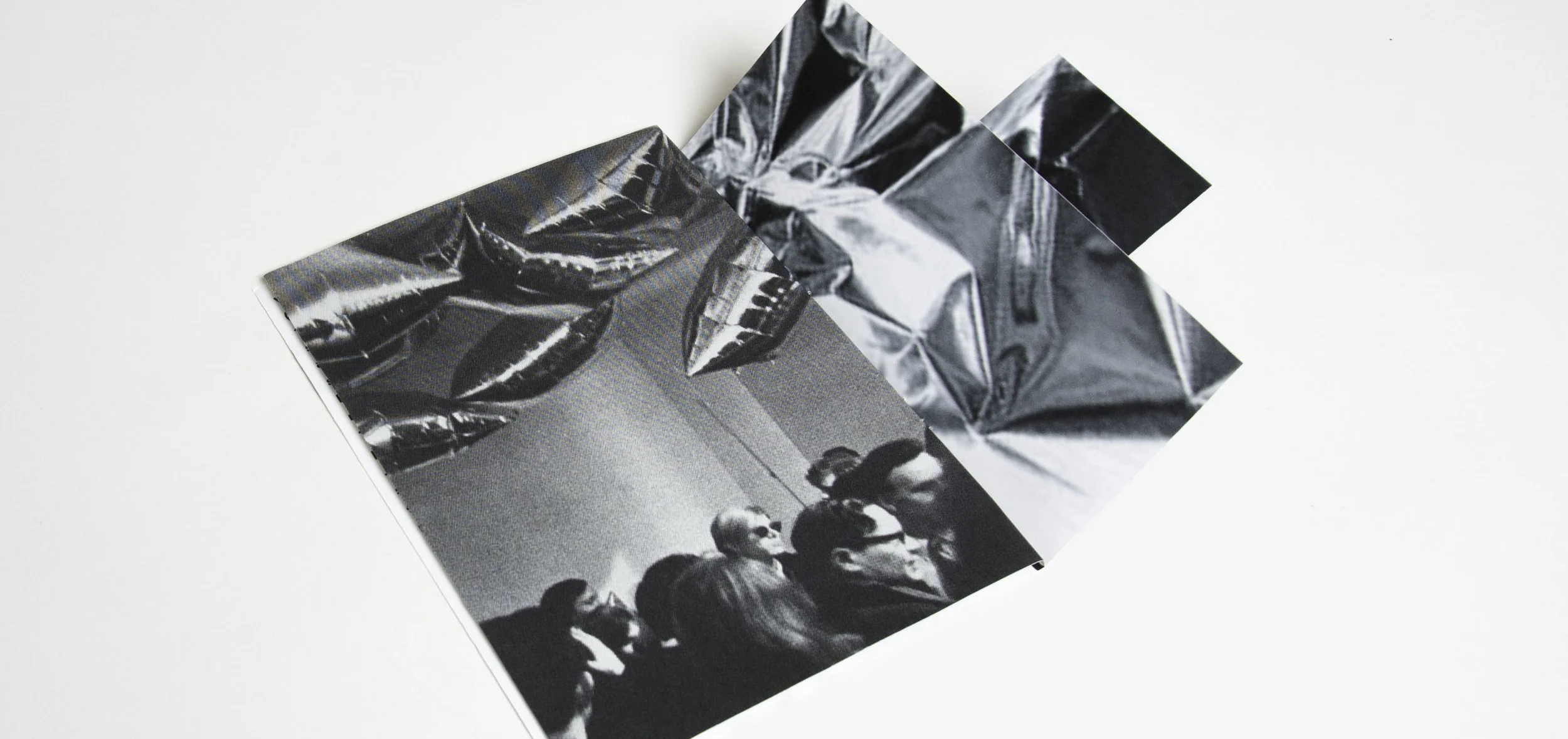 The zine is encased in a Mylar bag with “Andy” screen-printed on it. The Mylar bag references Warhol’s Mylar exhibit (on the last page of zine) and acts as a protective barrier to the zine.