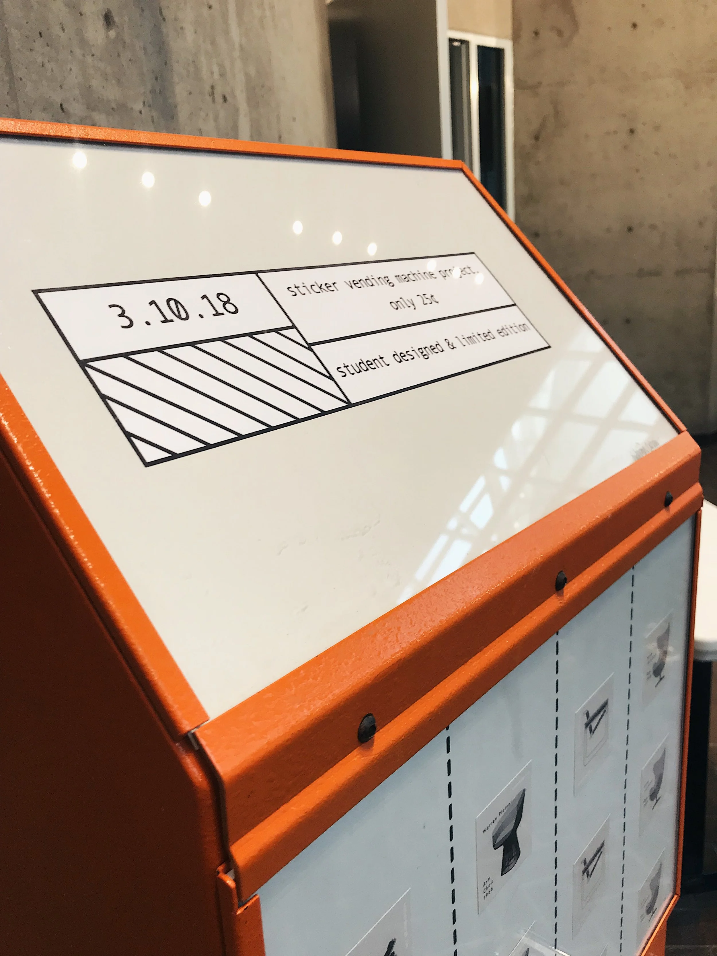 To share the illustrations with the school, I installed the stickers in an old vending machine owned by the TCU art department. The "Sticker Vending Machine Project" sits by the entrance of TCU's Moudy, College of Fine Arts for everyone to enjoy.