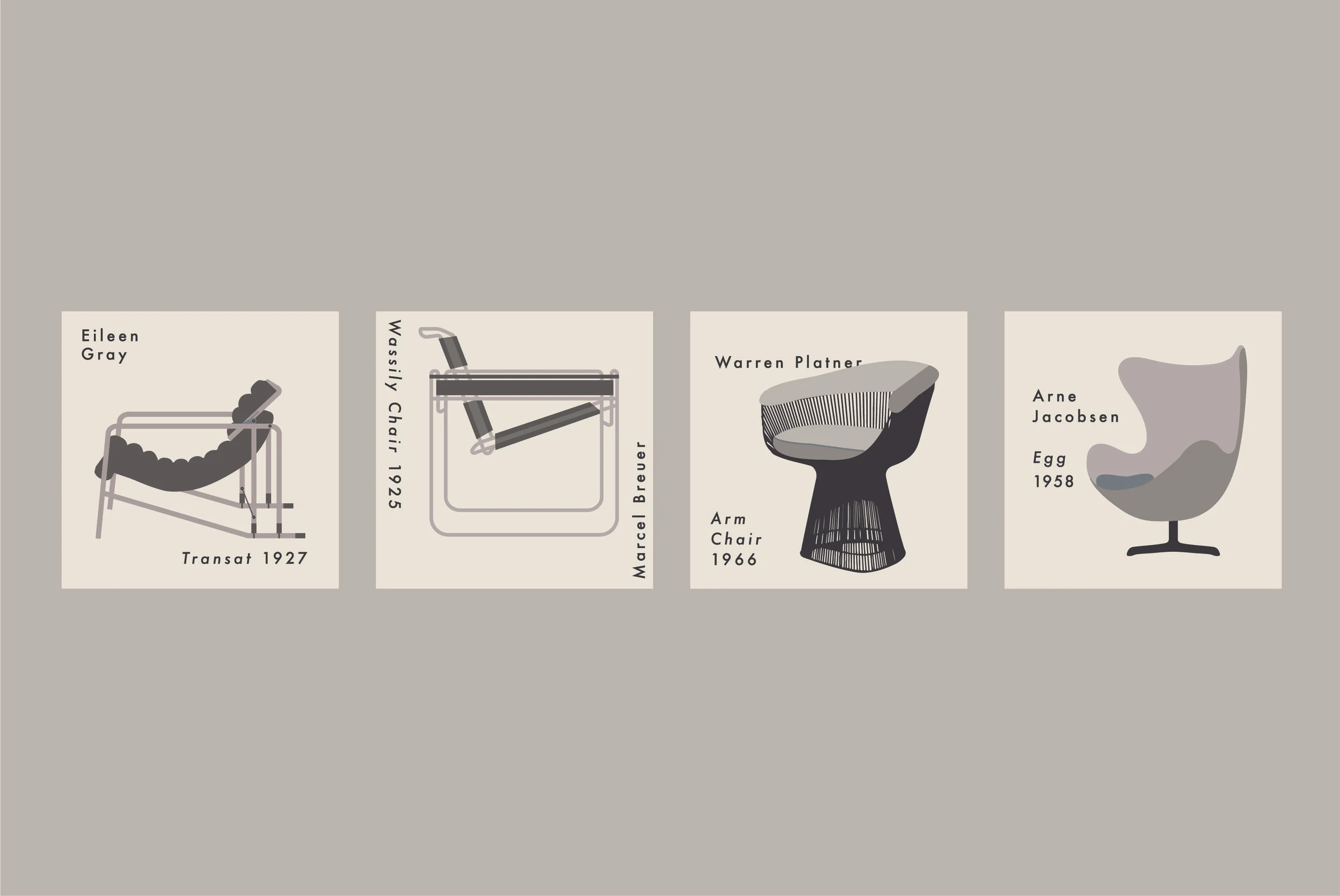 I created a set of four stickers created in or inspired by the Bauhaus art school. I became heavily inspired by the Bauhaus and the work created there after learning about it in my Visual Art History class at TCU. I created simple illustrations of Eileen Gray's Transat, Warren Platner's Arm Chair, Marcel Breuer's Wassily Chair and, Arne Jacobsen's Egg.